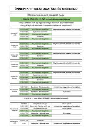Kérjük az urnatemető látogatóit, hogy az alábbi rend szerint tervezzék a kriptalátogatást.